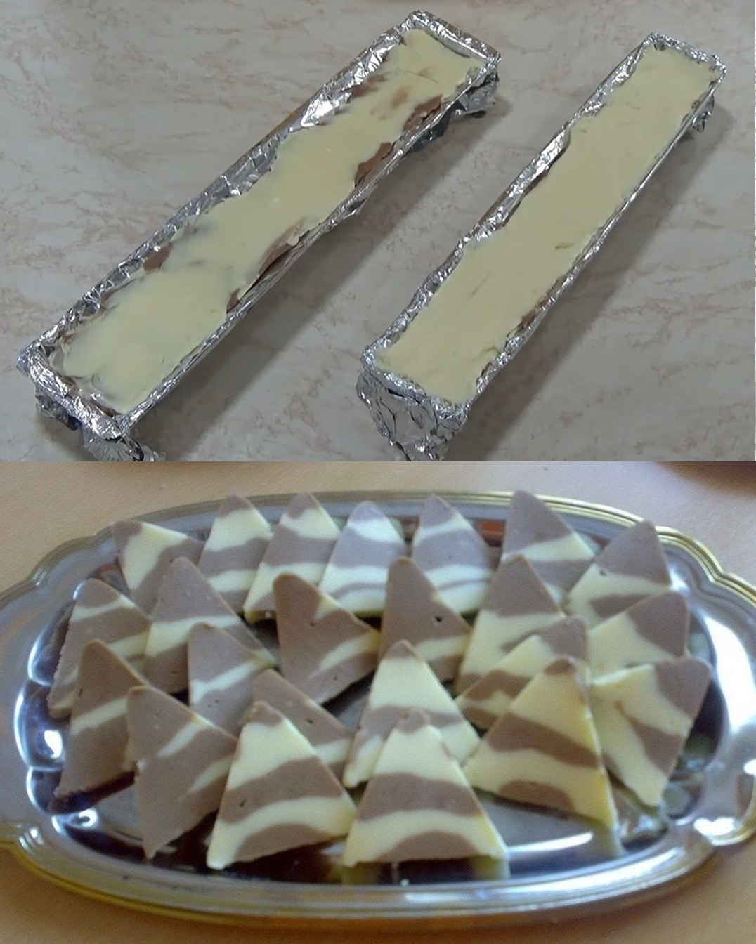 Prekrasan okus, drugačiji od ostalih slastica na koje ste možda navikli. Ako nemate trokutaste kalupe, obje smjese možete izliti u manji pleh i nakon toga rezati na štanglice; ova metoda jednako dobro funkcionira.