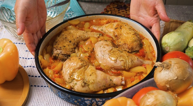 Ova kombinacija paprike, paradajza i crnog luka s nježnom piletinom pruža pravo gastronomsko uživanje. Porcija je dovoljna za četiri odrasle osobe, a priprema ne zahtijeva više od sat vremena.