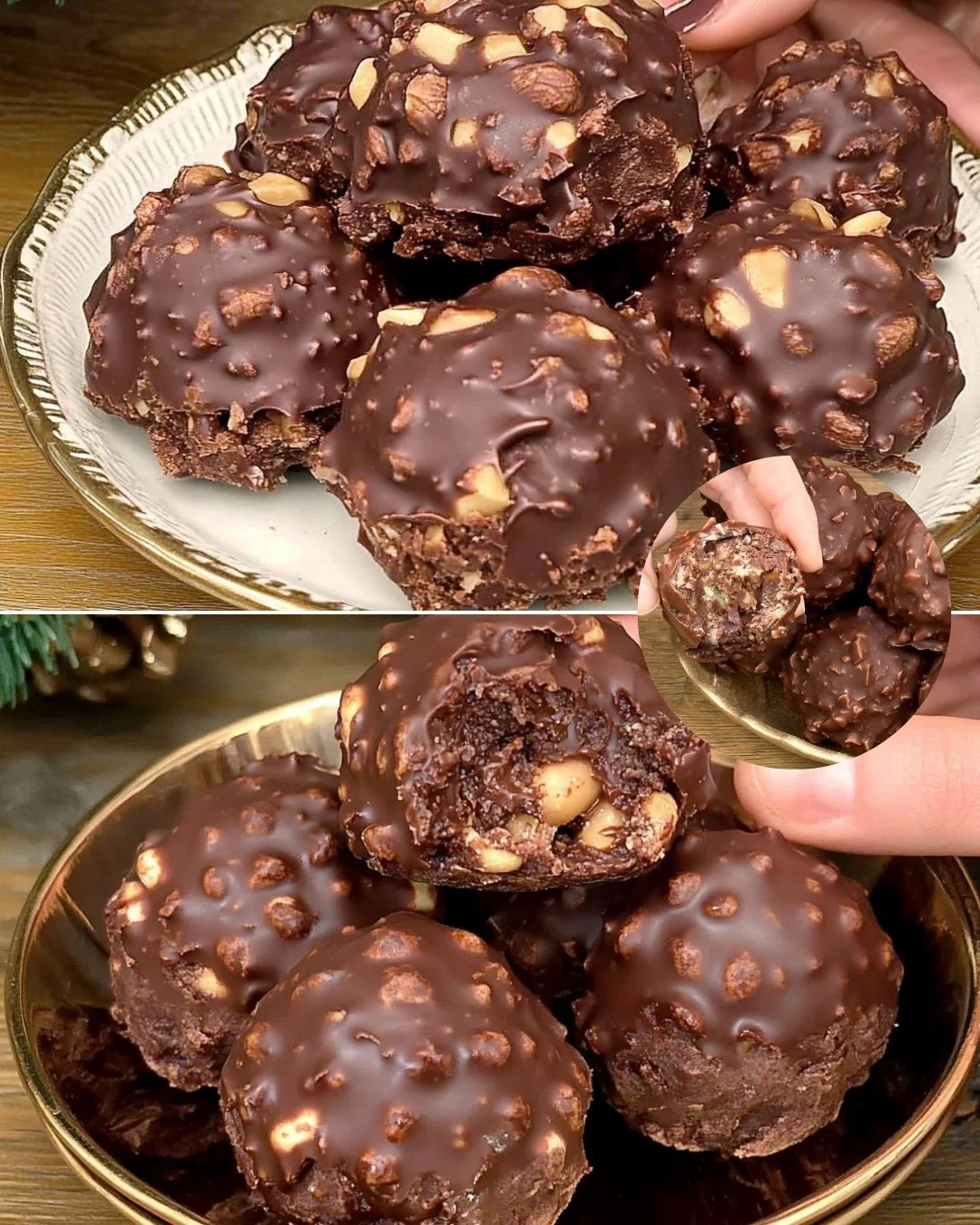 Ovi preslatki čokoladni kolačići s kikirikijem i tartufima služe kao idealna blagdanska poslastica, spajajući luksuzne okuse čokolade, prženog kikirikija i hrskavih kolačića u male sfere čistog užitka. Ovaj desert bez pečenja pojavio se kao suvremeni božićni obrok, pružajući praktičan, ali upečatljiv izbor za svečana okupljanja ili kao darove.