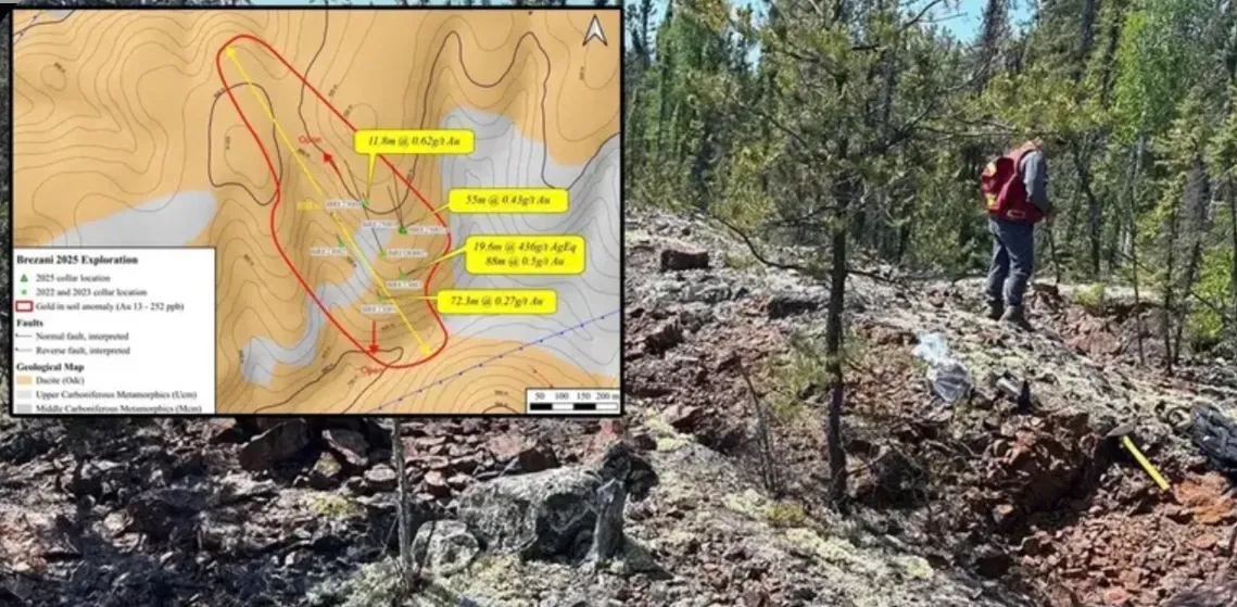 Na lokalitetu Brezani, najnovija bušotina (BRE25001A) zabilježila je prosječan sadržaj od 0,43 grama zlata po toni rude na intervalu dužine 55 metara, već od 12 metara ispod površine. Time je zona zlatne mineralizacije produžena na ukupno 170 metara u pravcu sjever–jug.